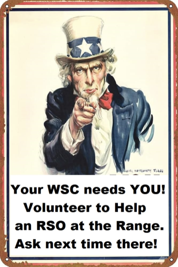 PLEASE give this serious consideration as YOUR RSOs would really appreciate the help. You can even look at the range calendar on the WSC website and pick your favorite RSO! Bring water, sunscreen, a light pair of gloves, and a hat. Dress appropriately. Have a question? Shoot us an email. We’re all volunteers and we could sure use more help!