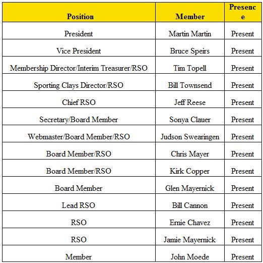 Ø Warren Weir resigned from Treasurer, Sporting Clays & RSO